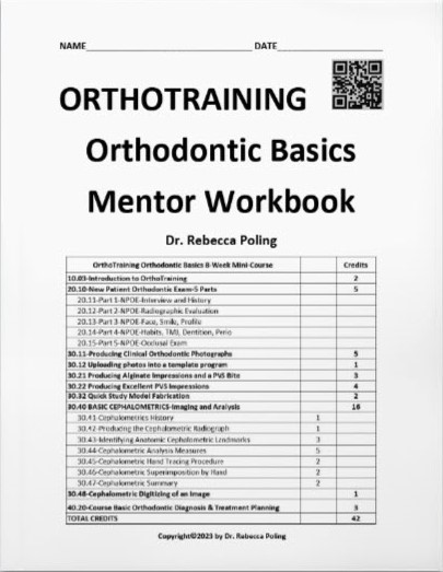 The 2024-OrthoTraining Orthodontic Basics Mentor Workbook* (358 pages) is the complete guide for the Mentor supervising learners who want to deliver orthodontic care at the highest standard (as practiced by ABO-Board Certified orthodontists).